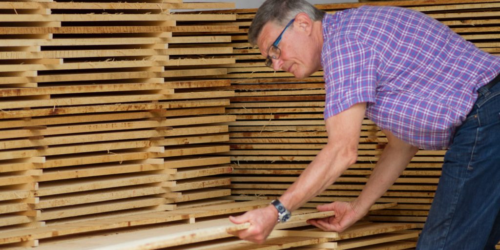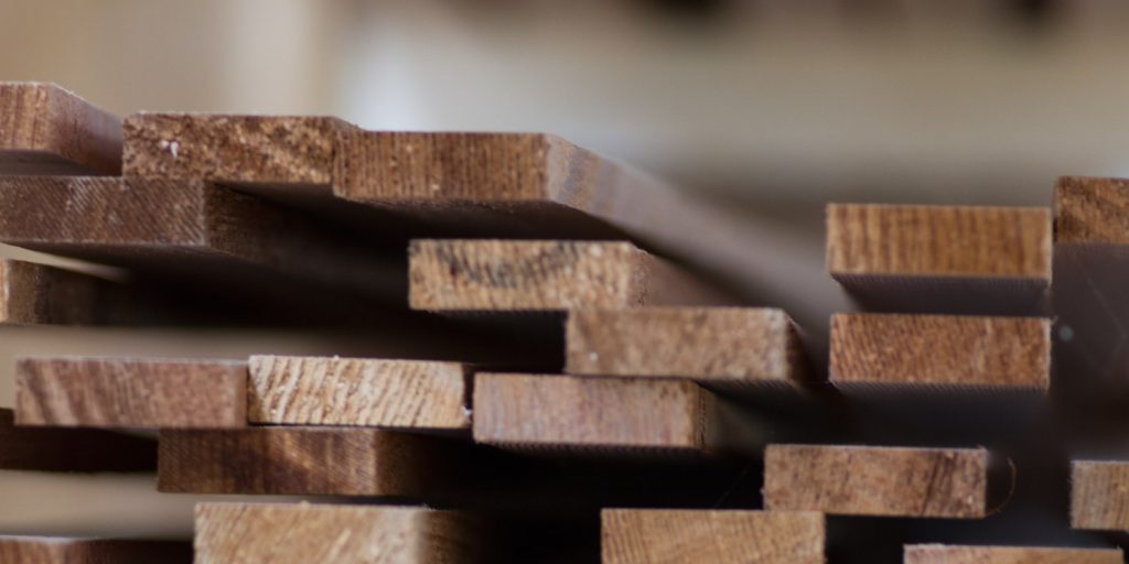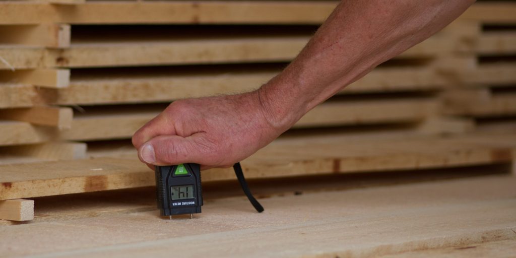 When I receive the wood from the sawmill, it is left to dry for a few months. This allows the wood to dry until it has reached an optimal residual moisture content and it also allows me to sort out warped pieces.